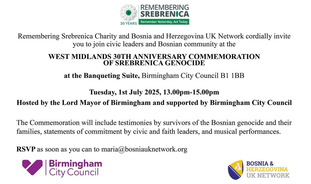 WEST MIDLANDS 30TH ANNIVERSARY COMMEMORATION OF SREBRENICA GENOCIDE